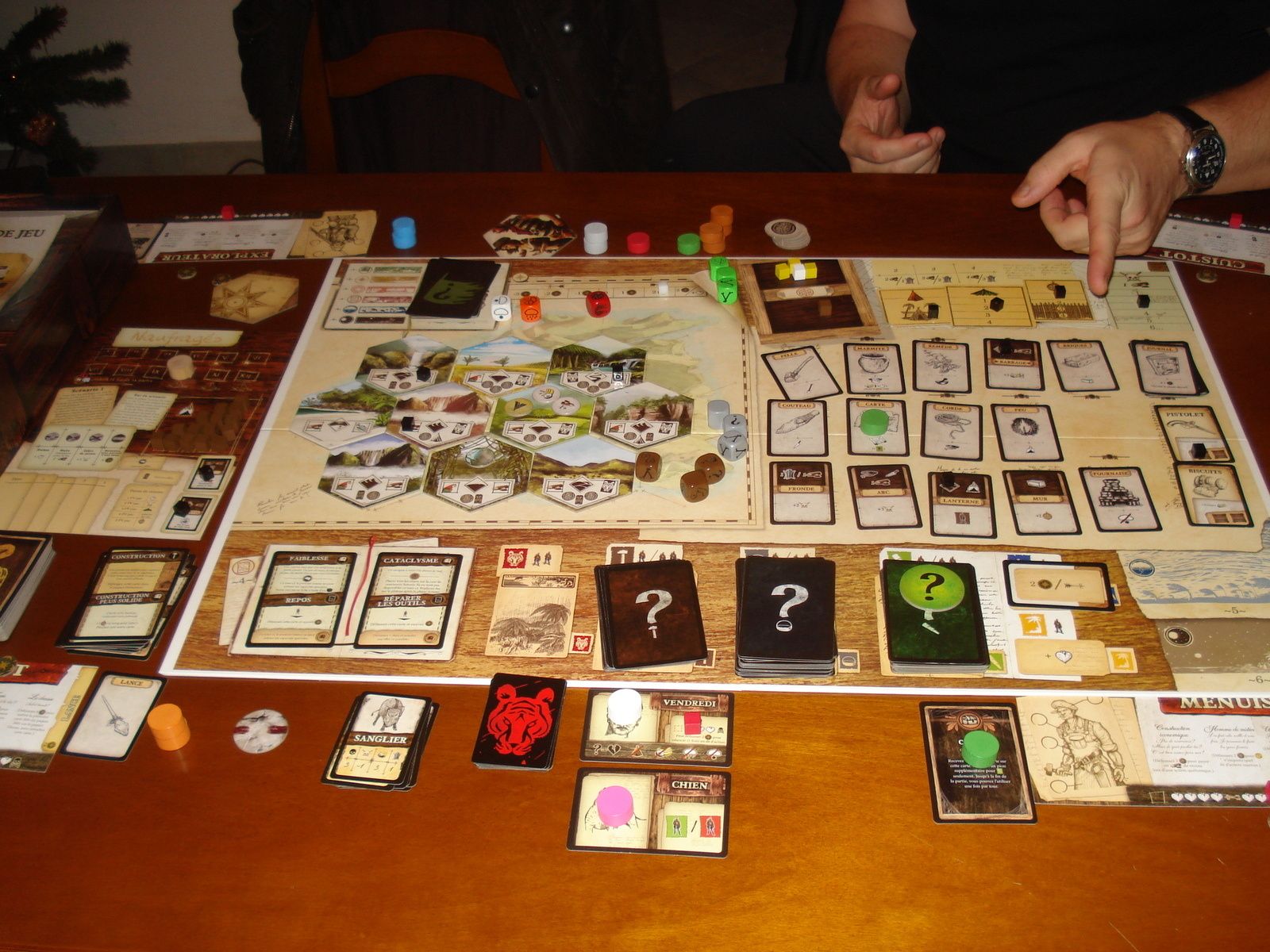 puisque l'on me posera la question tôt ou tard, je vais répondre maintenant, entre la version Iello (naufragés) et Filosofia (Robinson Crusoé), pour l'instant je préfère la version Iello, je trouve le jeu plus interactif, on a beaucoup plus de décisions à prendre, et surtout de prendre les bonnes