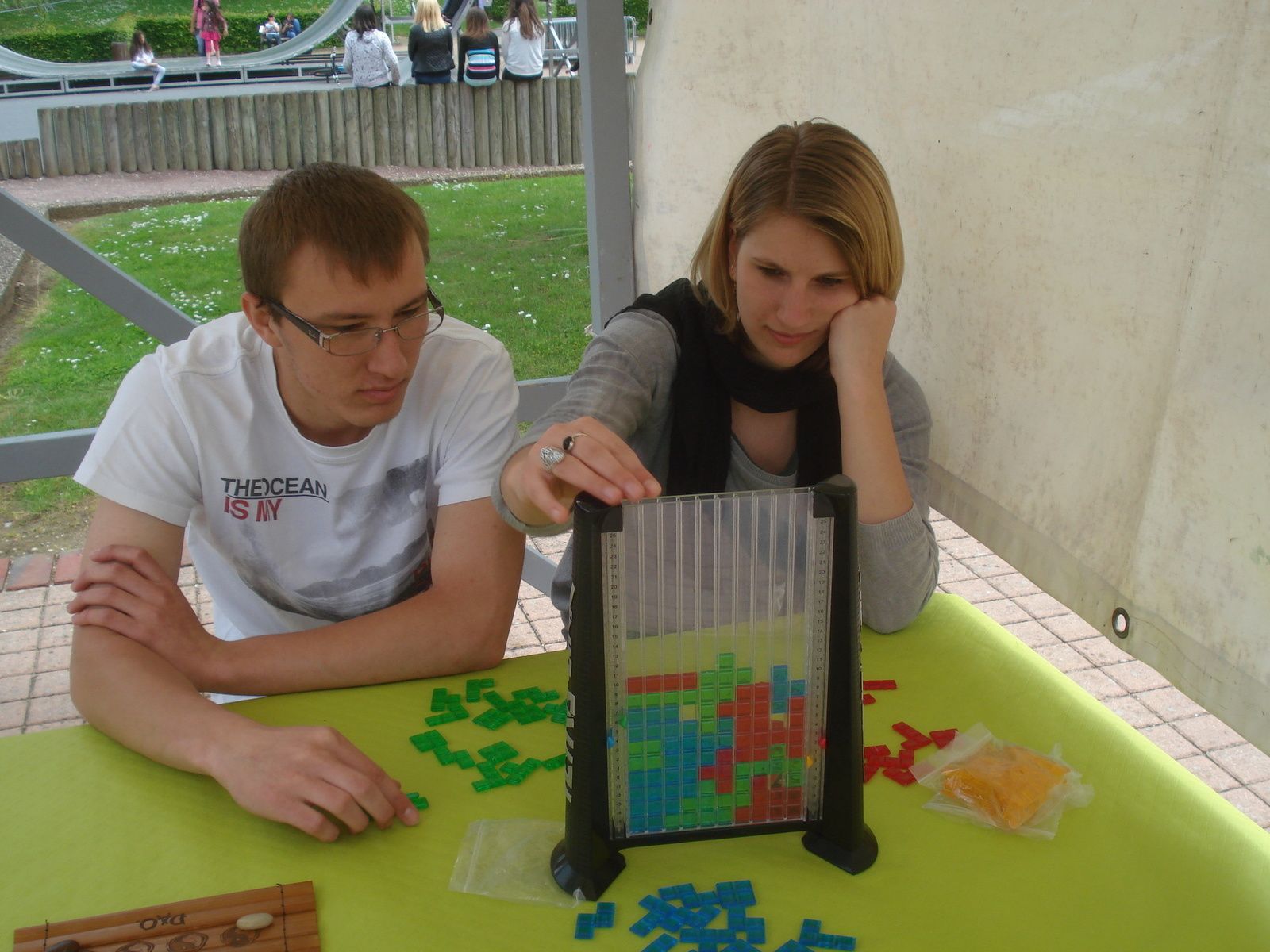 une partie de TETRIS LINK, un jeu que je ne connaissait pas qui se joue tout seul et qui devrait bien tourner dans nos après midi ludiques, je vais essayer de me le procurer
