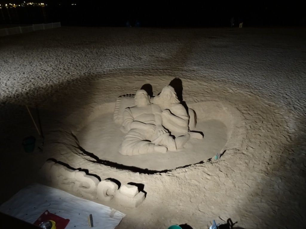 un coup d'oeil sur la sculpture sur sable de nuit