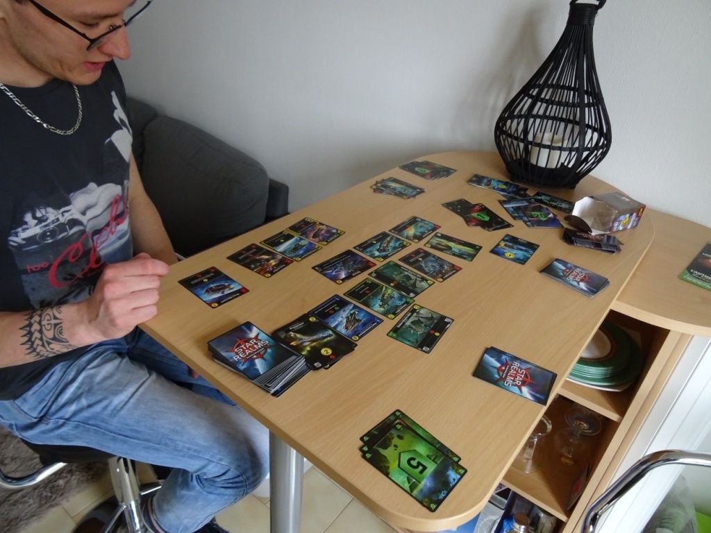 et comme il se doit après avoir bricolé toute la matinée, pose de lustre par ici, montage de la table, isolation des boitiers placo ... j'avais bien mérité une petite partie de STAR REALMS en attendant l'apéro
