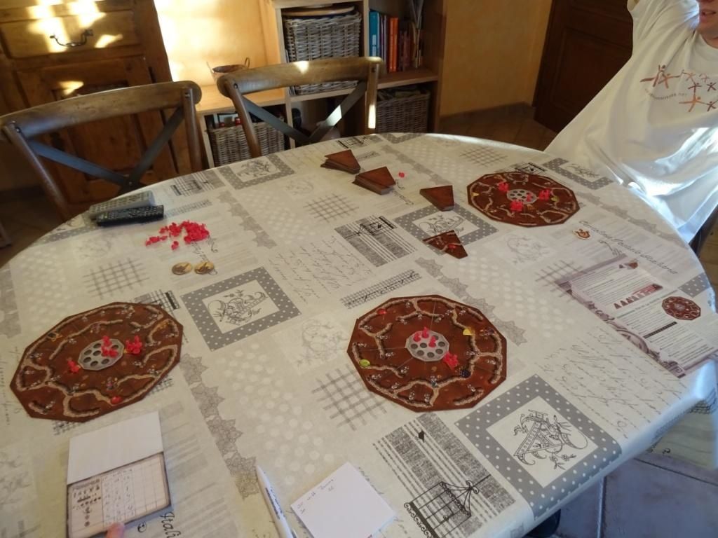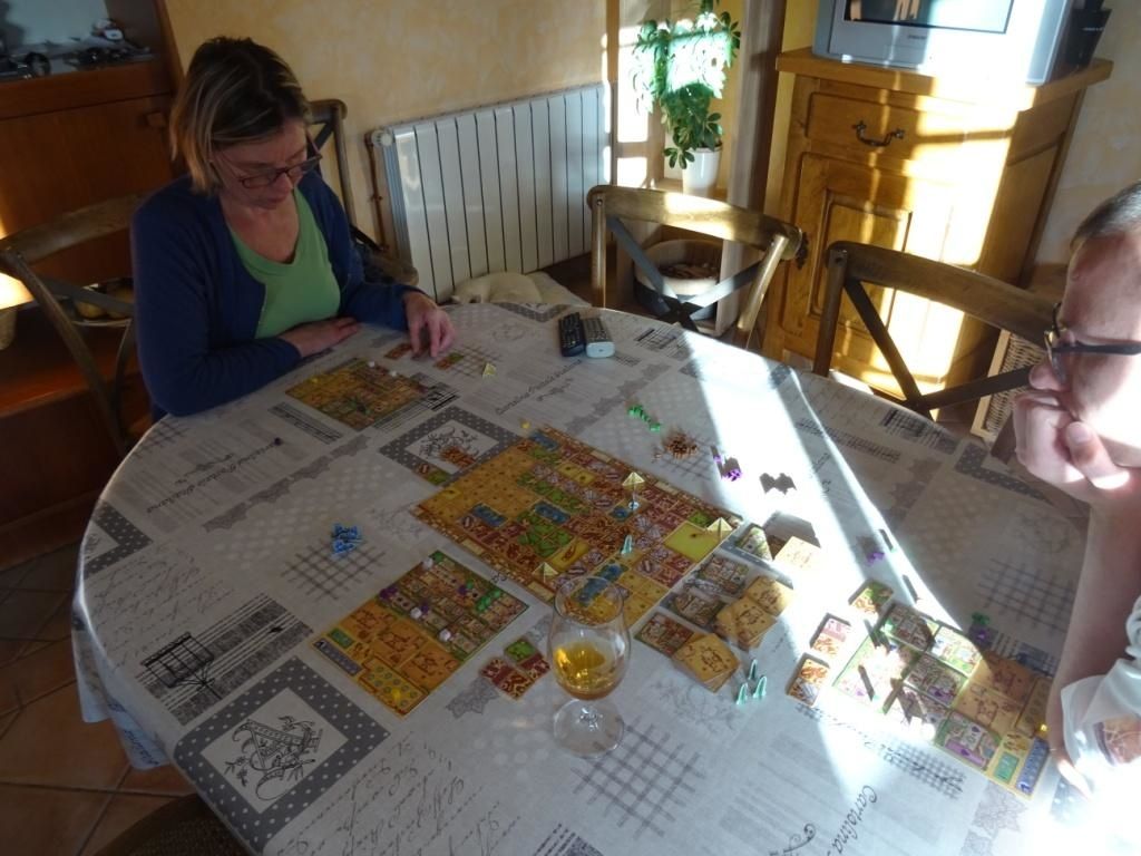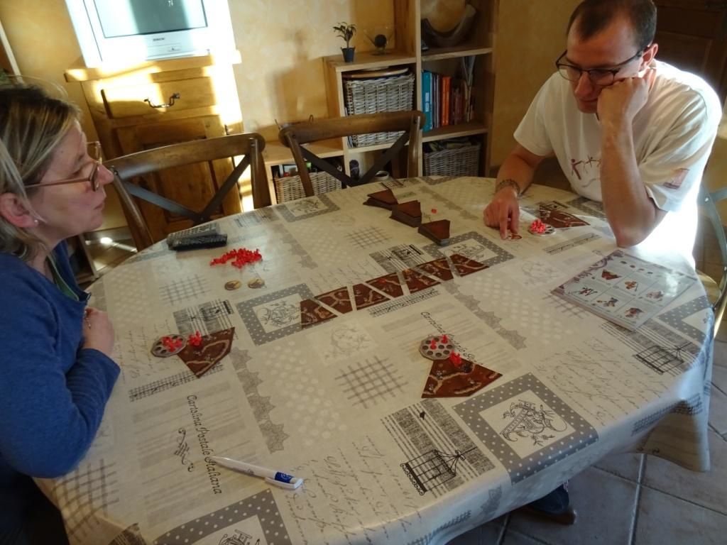après une grosse journée et soirée d'animation, on a décidé de ne rien faire ce dimanche après midi pour se reposer un peu, et puis finalement NATHALIE nous a poussé à présenter les jeux de la veille à THOMAS, alors on a joué